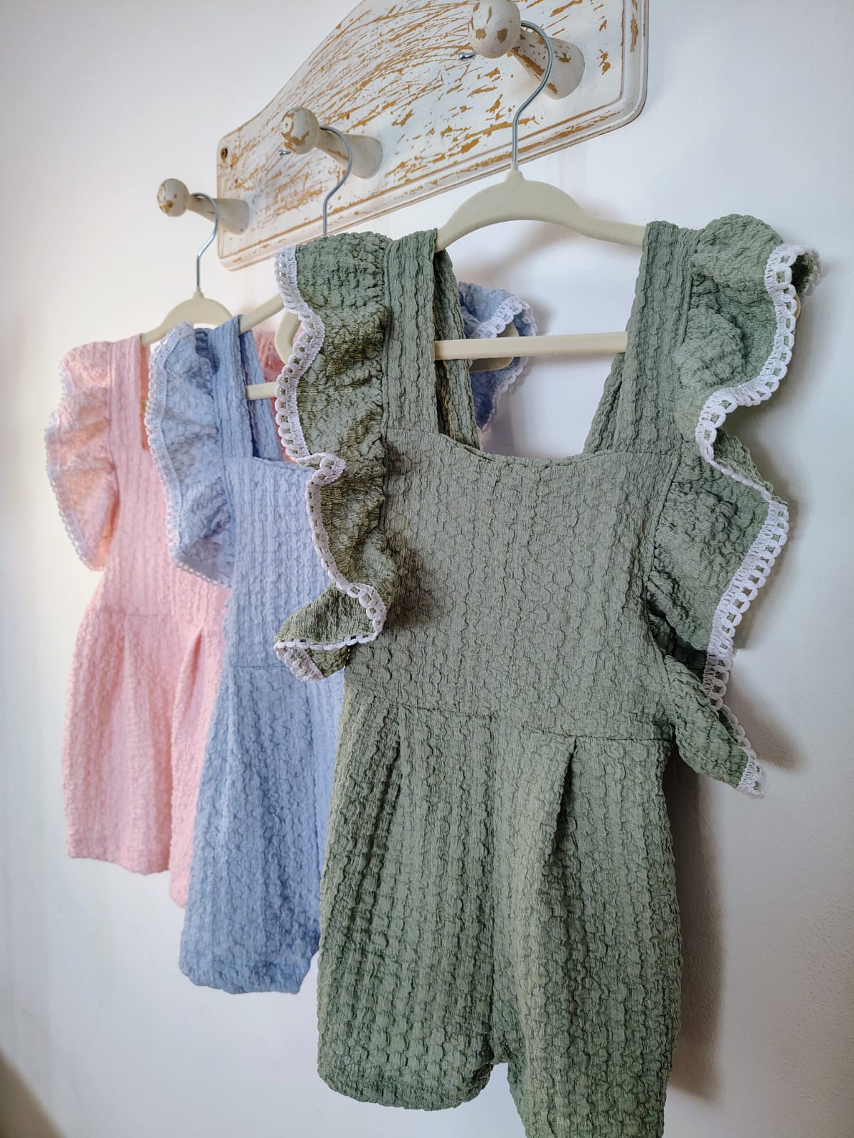 Tipo de tela y Caracteristicas:  El jardinero esta fabricado en TELA HAWAI 100% poliester, este tipo de tela tiene la particularidad de ser muy suave y no da alergias! El contacto directo con la piel es muy agradable! Es una tela liviana para el calor, respirable y muy suavecita! La calidad es PREMIUM y resisten el uso diario de tu bebé!